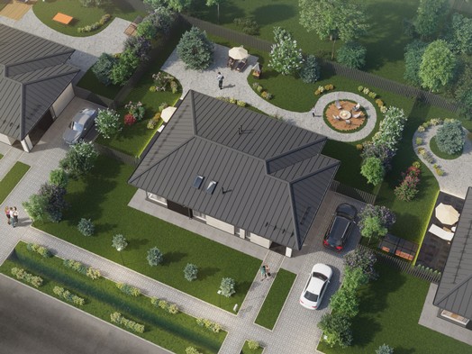 Одноэтажные дома выполнены в едином архитектурном стиле и земельным участком позволют вам создать свое комфортное жилье. Благоустроенная территория и все городские коммуникации отличают наш проект высоким уровнем комфорта: